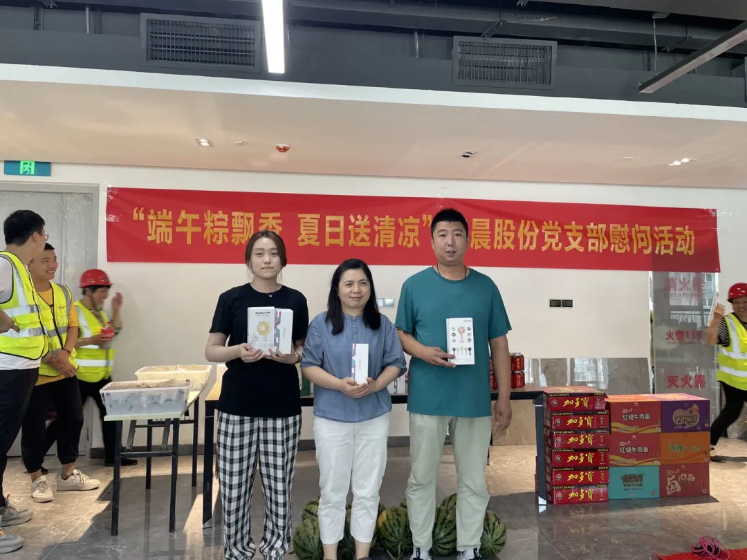 浓情端午粽飘香,走访慰问送清凉。随着气温攀升,奋斗在一线岗位的职工正经历着一场特别的“烤”验。恰逢五月端午,为做好防暑降温工作,喜迎端午佳节,6月11日乐动股份党支部在智能交通产业园项目开展了“端午粽飘香 夏日送清凉 ”主题活动,为奋战在一线的职工送去清凉与欢乐,让员工切实感受到公司及组织的关爱。