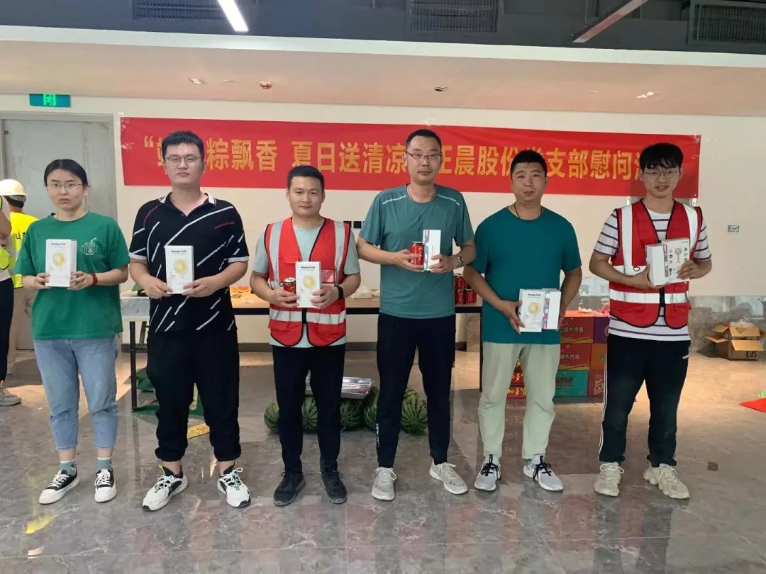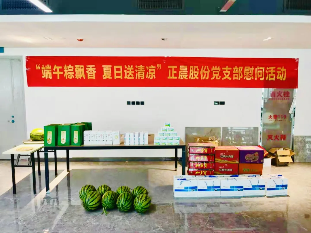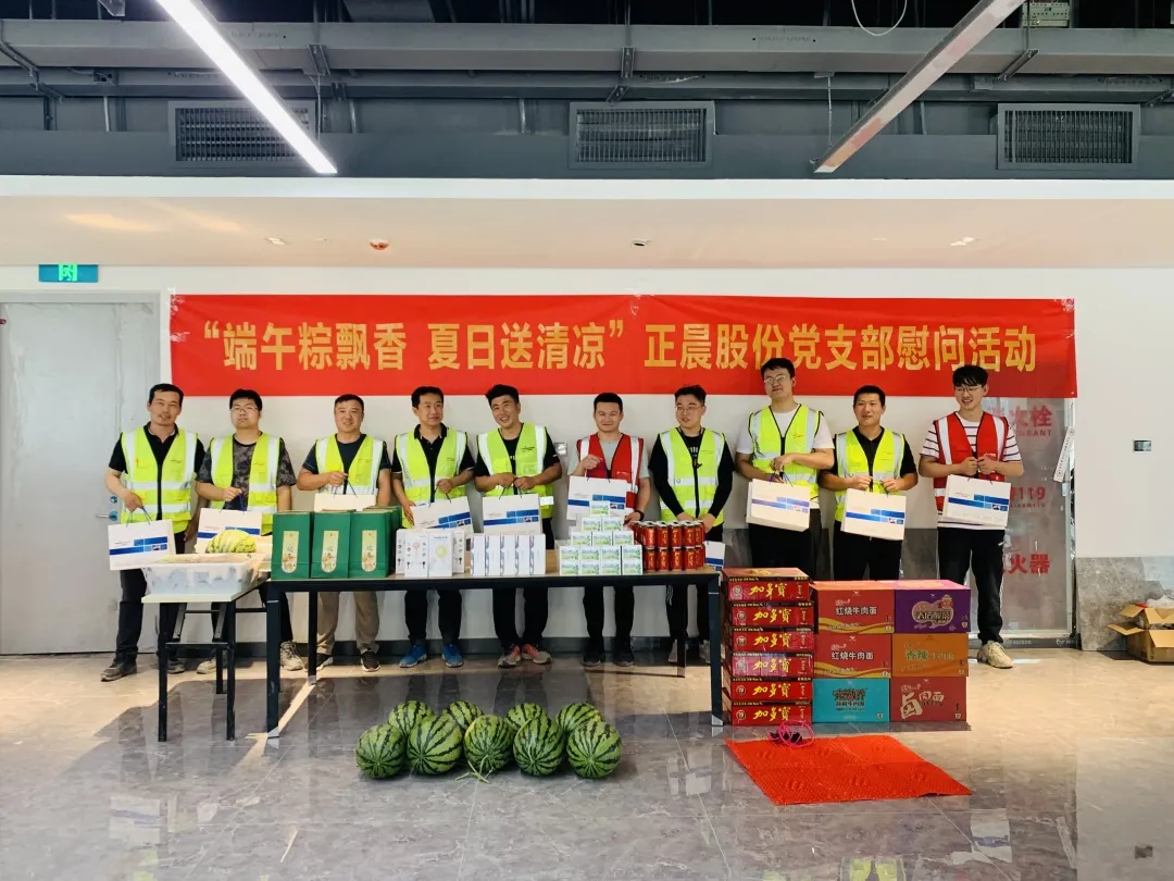 活动现场,乐动股份党支部党员代表们为现场工作人员送上了端午粽子、西瓜、凉茶、藿香正气水、方便面、洗漱大礼包等防暑降温慰问品,并向大家送去节日的问候和祝福。